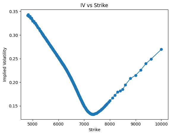 If the Black-Scholes model were perfect, IV would be a flat line. Whether you bought a strike at $5,000 or $10,000, the “expected speed” of the stock should be the same.